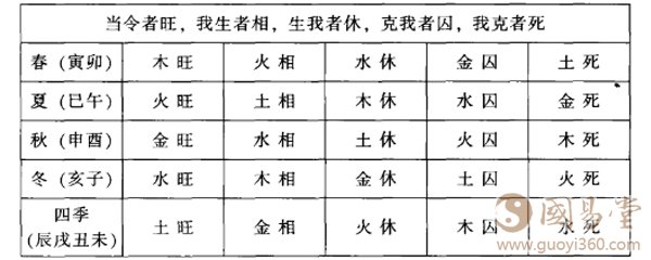 即日干处于月支的旺地,为得令或当令。众书云处“旺相休囚死”的旺相之地,或“生旺死绝表”的长生、沐浴、临官、帝旺之地。以我的经验来讲,一般用“旺相休囚死”来论得令与否较为准确,之前章节中已有此表,为大家对照运用方便,再次录此。