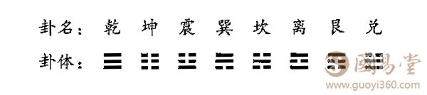 原始的阴阳说,历来认为是起源于古老的《周易》八卦。八卦是指以下八个基本卦: